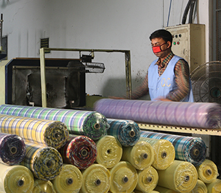 800,000 metres per month production capacity. Complete plant providing a full range of services. We have our own lab and design studio to match any colour or print. Our finishing unit can produce fabrics with any finish including easy-care, wrinkle-free, water repellent, peach finish, wax coated, paper touch and more.